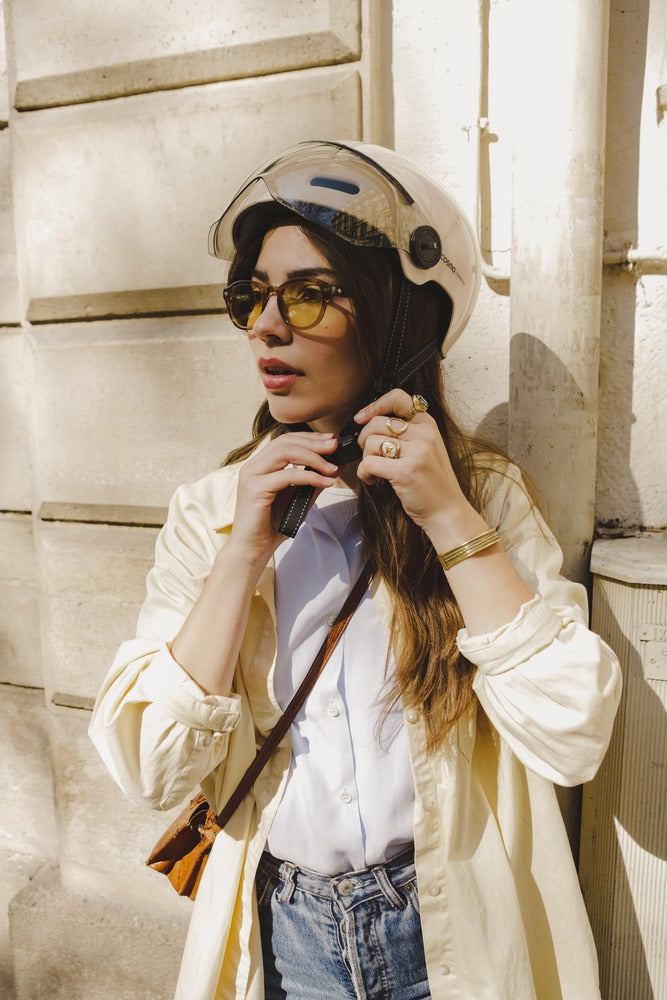 Une lumière intelligente et une assurance dans un casque citadin, pour habiller la mobilité à vélo et trottinette
