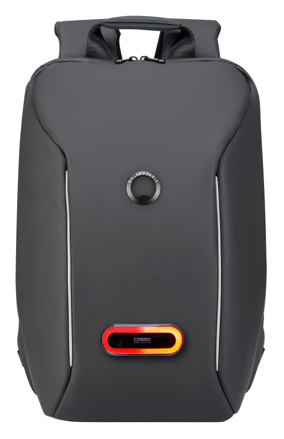 Waterproof bag with connected backlight, computer and credit card protection, and padded shoulder straps. To follow you on the road and in your day.
