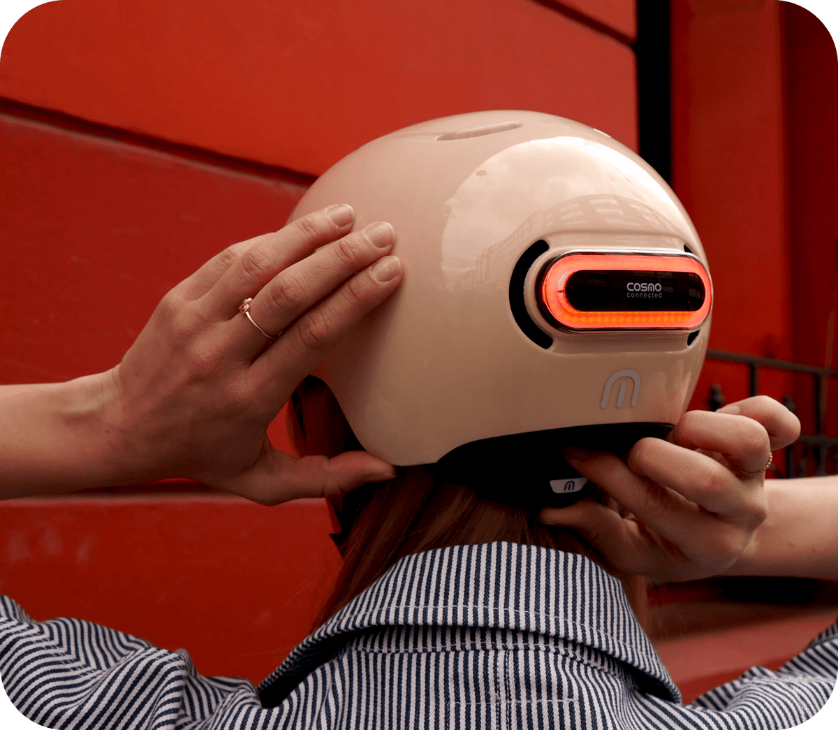 Un casque urbain au design soigné. Un feu arrière intelligent : clignotants contrôlables avec une télécommande, feu de freinage automatique, feu position et de warning.