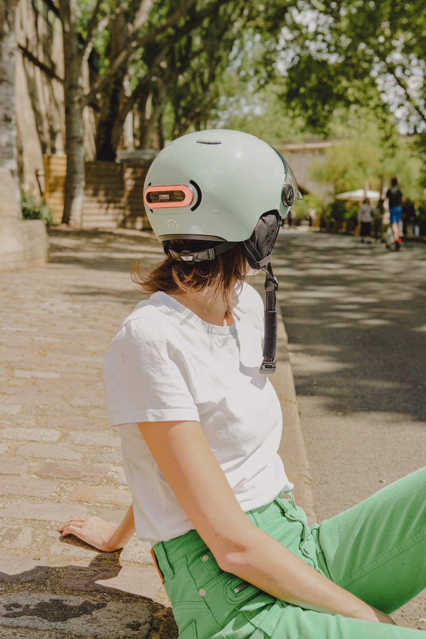 Le support sur lequel le Cosmo Ride se fixe peut se coller à tous les casques citadins “plats”, ou bien s’attacher à des casques ventilés. Cosmo Ride est adapté aux véhicules de mobilité douce à vitesse modérée uniquement, comme le vélo, la trottinette, les monowheels, le skateboard ou le roller.